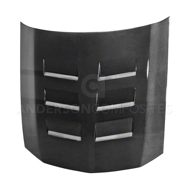 High-End Appearance. Replacing your Ford Mustang's stock hood with Anderson Composites' Carbon Fiber Type-TS Hood will provide an immediate boost in your Pony's overall appearance. Thanks to the hood's muscular design that is perfect to provide that hardcore, aggressive style you've been looking for so your Mustang will finally get the attention it deserves.