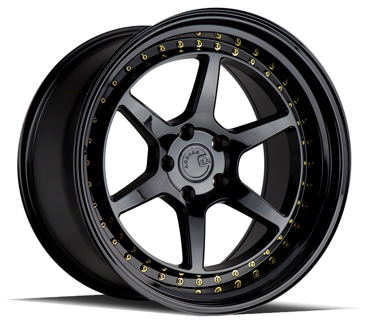 Application. This Aodhan DS09 Gloss Black with Gold Rivets Wheel; Rear Only; 19x9.5; 15mm Offset, with a backspace of 5.841 Inch, 148.4mm; and bolt pattern of 5 x 114.3mm (5 x 4.5-Inch), is designed to fit 2005–2009 Mustang models. Sold individually.