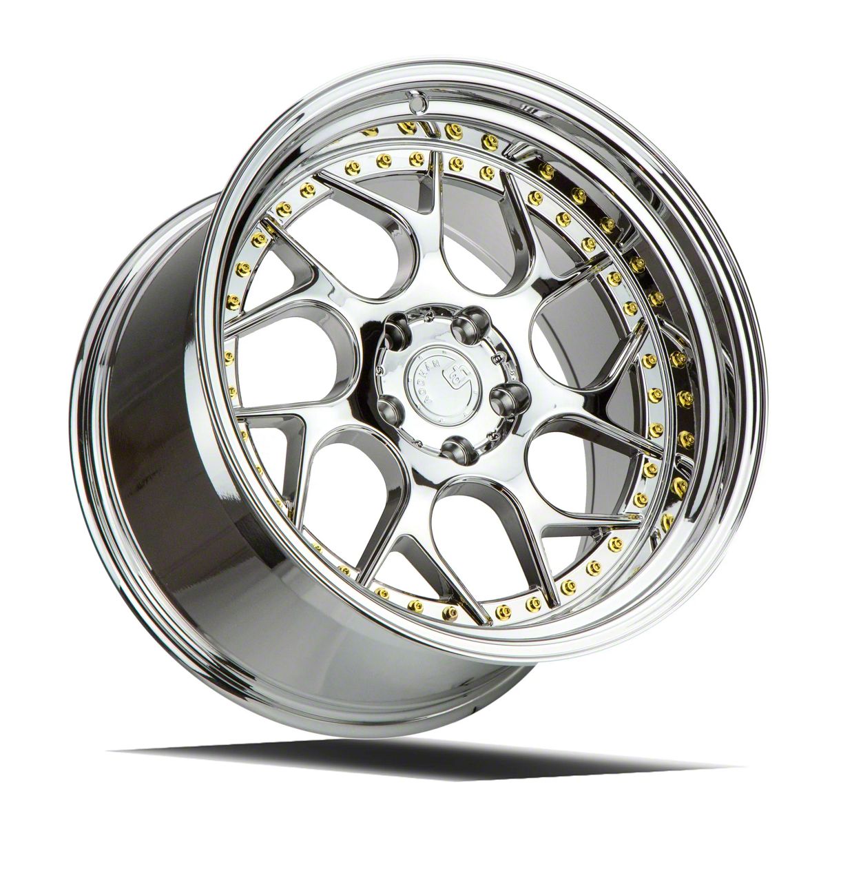 Application. This Aodhan DS01 Vacuum Chrome with Gold Rivets Wheel; 18x9.5; 30mm Offset, with a backspace of 6.431 Inch, 163.3mm; and bolt pattern of 5 x 114.3mm (5 x 4.5-Inch), is designed to fit 2010–2014 Mustang models. Sold individually.