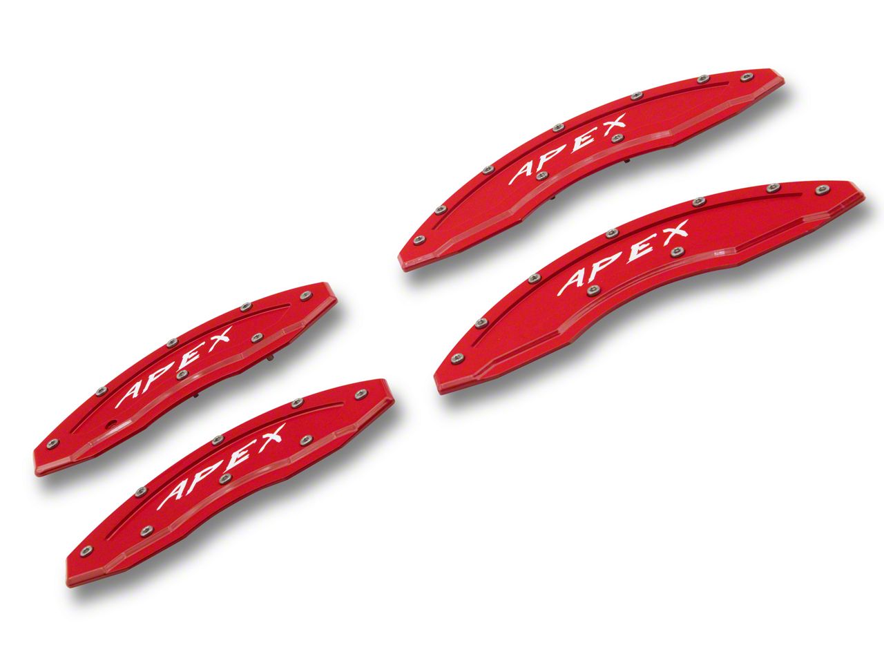 Design. The Apex Overlay Gen III Brake Caliper Overlays provide a striking touch of bold red to your vehicle, significantly boosting its overall visual appeal and making it stand out on the road. This vibrant red hue is specifically chosen to catch the eye and give your vehicle a custom look that reflects your personal style. The enhanced aesthetics can also potentially increase the resale value of your vehicle by improving its curb appeal.