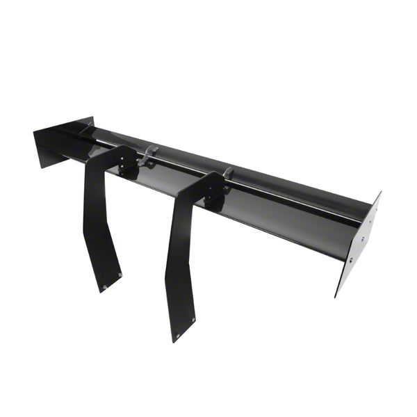 Construction and Appearance. This wing is crafted using lightweight and strong pre-preg carbon fiber, delivering both strength and reduced weight for optimal performance. The swan neck design eliminates airflow disruption underneath the wing, enhancing aerodynamic efficiency. Its high-gloss carbon fiber finish offers a sleek and professional motorsport look.