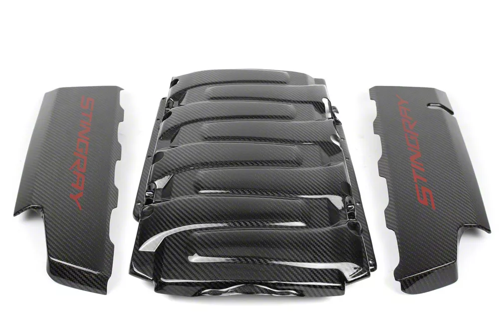 Design. The APR Performance Engine Cover Package significantly boosts the visual appeal of your Corvette C7 Stingray's engine bay. By adding this sleek, high-performance look, it not only complements but enhances the dynamic and modern design of your vehicle. The high-quality carbon fiber material gives a luxurious finish that catches the eye, making your engine bay stand out at shows or whenever you pop the hood.