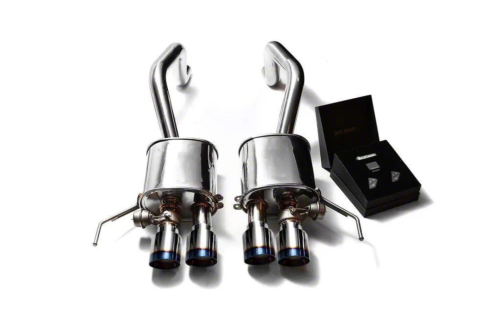 Chrome Silver Stainless Steel. Crafted from durable stainless steel with a sleek chrome silver finish and blue-coated tips, this exhaust system is not only a performance enhancer but also a visual upgrade for your vehicle. Its straightforward installation process, complemented by a wireless remote control kit, makes it a practical choice for car enthusiasts seeking both power and style. Say goodbye to the ordinary and embrace the extraordinary with the Armytrix Valvetronic Cat-Back Exhaust System.