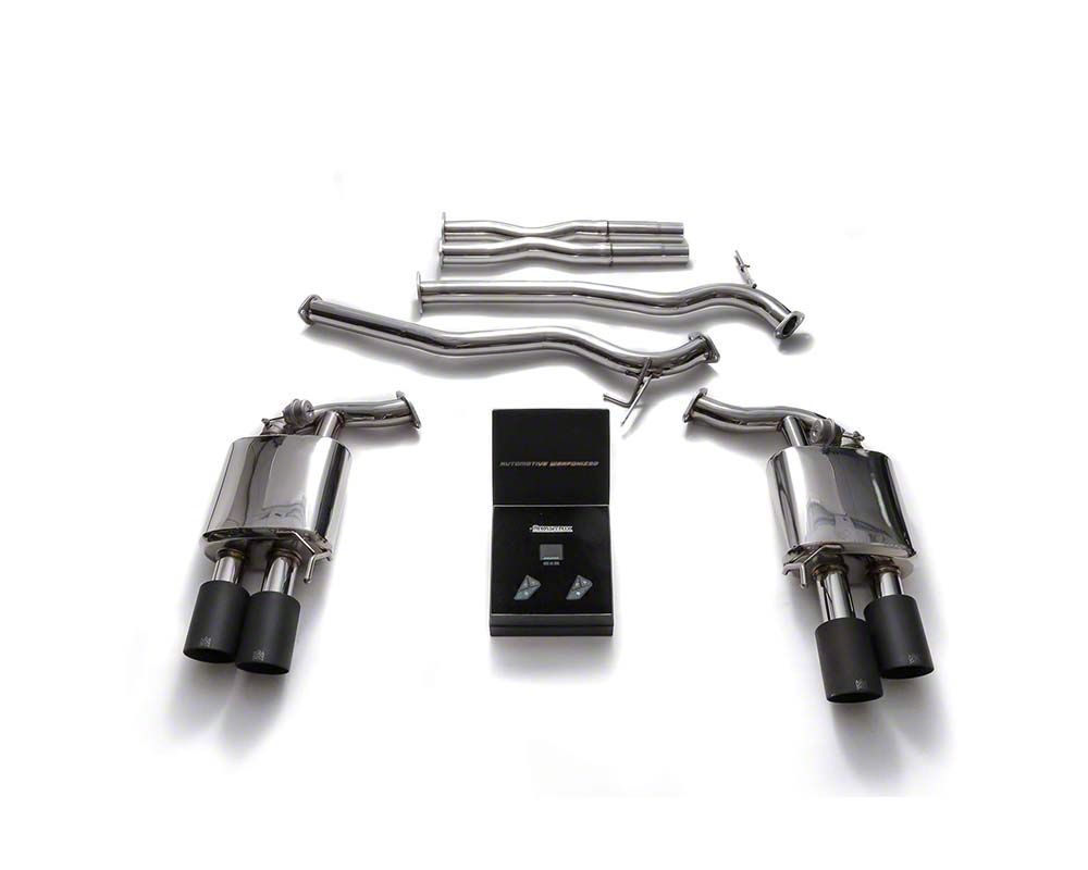 Advance Features. The Armytrix Valvetronic Cat-Back Exhaust System with Matte Black Tips is designed with a unique throttle pedal sensor and an engine RPM signal auto function. Furthermore, these advanced features ensure that the exhaust system responds intuitively to your driving style, adjusting the sound and performance dynamically.