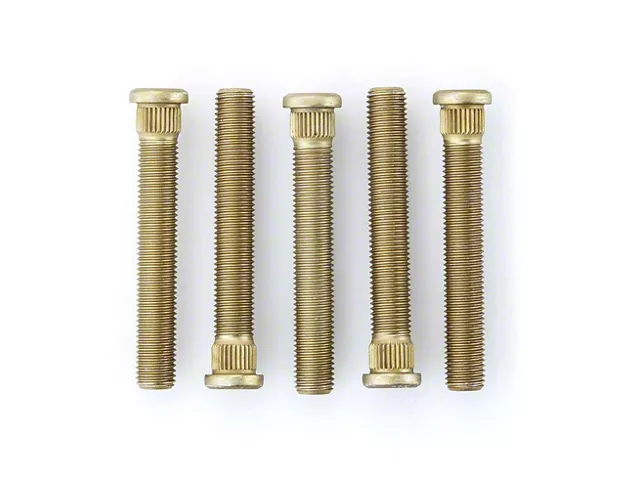 Construction and Appearance. Made with high-strength Chromoly steel, these wheel studs feature a gold finish for added durability and a sleek look. The thread size is M12 x 1.5, with a knurl diameter of 12.93mm, underhead length of 82.55mm, and a knurl length of 8mm.