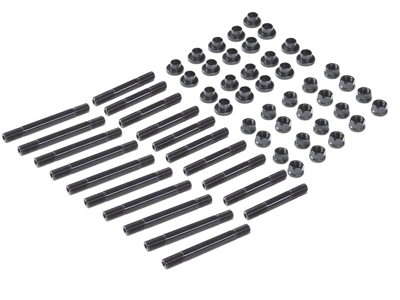 Premium Quality. Made in the USA from 8740 chromoly steel with a black oxide finish to resist corrosion, these ARP High-Performance Series Cylinder Head Studs are hardened to a tensile strength of 190,000 psi to provide superior strength for long-lasting performance. This kit includes head studs, insert washers and nuts.