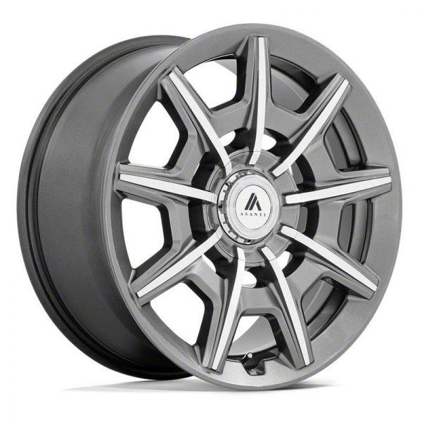 Gloss Anthracite Finish with Machined Accents. This 20x9 Asanti Wheels Esquire Series Wheel is completed in a high quality anthracite gray finish with machined accents for a striking contrast in appearance that everyone will envy. For added protection and good looks, this Wheel features a durable, gloss clear coat that is tough enough to stand up against the hazards of everyday driving - including road chips and pitting.