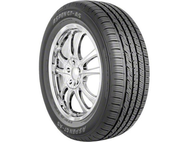 FEATURES AND BENEFITSAll season tractionEnhanced controllabilityLonger lasting tread lifeHigh speed performanceOVERVIEWThe Aspen GT-AS is a performance and high performance, all season tire manufactured for passenger vehicles and SUVs. This model has some touring sizes available as well. Aspen offers a 50,000 mile treadwear warranty with this model.All season traction is promoted with the asymmetric tread design and the durable compound. The all season compound and the asymmetric ribbed tread design work together to boost the dry, wet, and winter weather traction. The sipe and notch placement helps to increase the grip on the road surface with extra biting edges, while the compound maintains the flexibility of its rubber elements. The circumferential grooves prevent hydroplaning in wet weather conditions, promoting a safer driving experience in versatile weather conditions.The ribbed tread design maintains the surface contact at all times. As a result, the tire is able to increase the steering responsiveness and driving stability. In this manner, the tire promotes a quick and precise steering response to the driver’s commands, while the structure is secured against the driving pressure affecting the tire. The shoulder block placement increases the cornering ability as these elements provide extra biting edges to grip the road surface. The asymmetric tread’s elements generate friction, shortening the overall braking distance. These enhancements greatly boost the overall controllability.The tread design and the all season compound work together to boost the usability. The stronger compound elements and the durable tread design increase the service life. The durable compound keeps the rubber flexibility and helps to prevent heat build-up across the tread area, which greatly decreases the tire’s overall treadwear rate. The asymmetric ribbed tread design evenly circulates the driving pressure across the tread area, avoiding irregular and premature wear formations. The slow and even wear significantly boosts the overall service life.The GT-AS upgrades the high speed durability. The stronger construction and the durable compound work together to increase the high speed performance. The structure keeps the ideal tire shape under the high speed pressure, while the compound prevents heat build-up across the tread area. This combination enables the tire to boost the overall high speed performance.