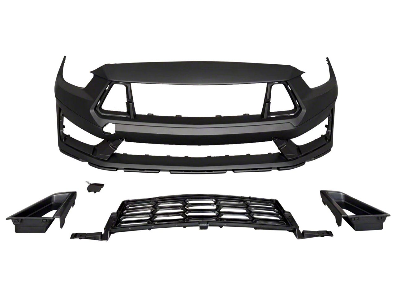 Aggressive Styling Upgrade. The Dark Horse Front Bumper Conversion is the ultimate choice for vehicle owners seeking to give their car a bold, modernized appearance. Inspired by the striking design of the 2024 Dark Horse, this bumper delivers an aggressive new look with enhanced styling elements that stand out. With upgraded visual appeal and practical enhancements, the Dark Horse Front Bumper Conversion transforms your vehicle into a show-stopping machine on the street or at events.