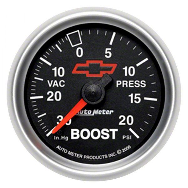 Description. The standard in the industry, AutoMeter’s Mechanical Boost/Vac Gauges have found their way into more builds than any other. Using a patented, high precision bourdon tube meter movement, there isn’t another gauge on the market that can lay claim to the levels of accuracy or durability you’ll find here. A simple 1/8” NPT pressure connection requires no electrical hookup for operation. Includes 1/8” NPT fittings and nylon line kit. Officially licensed GM product.