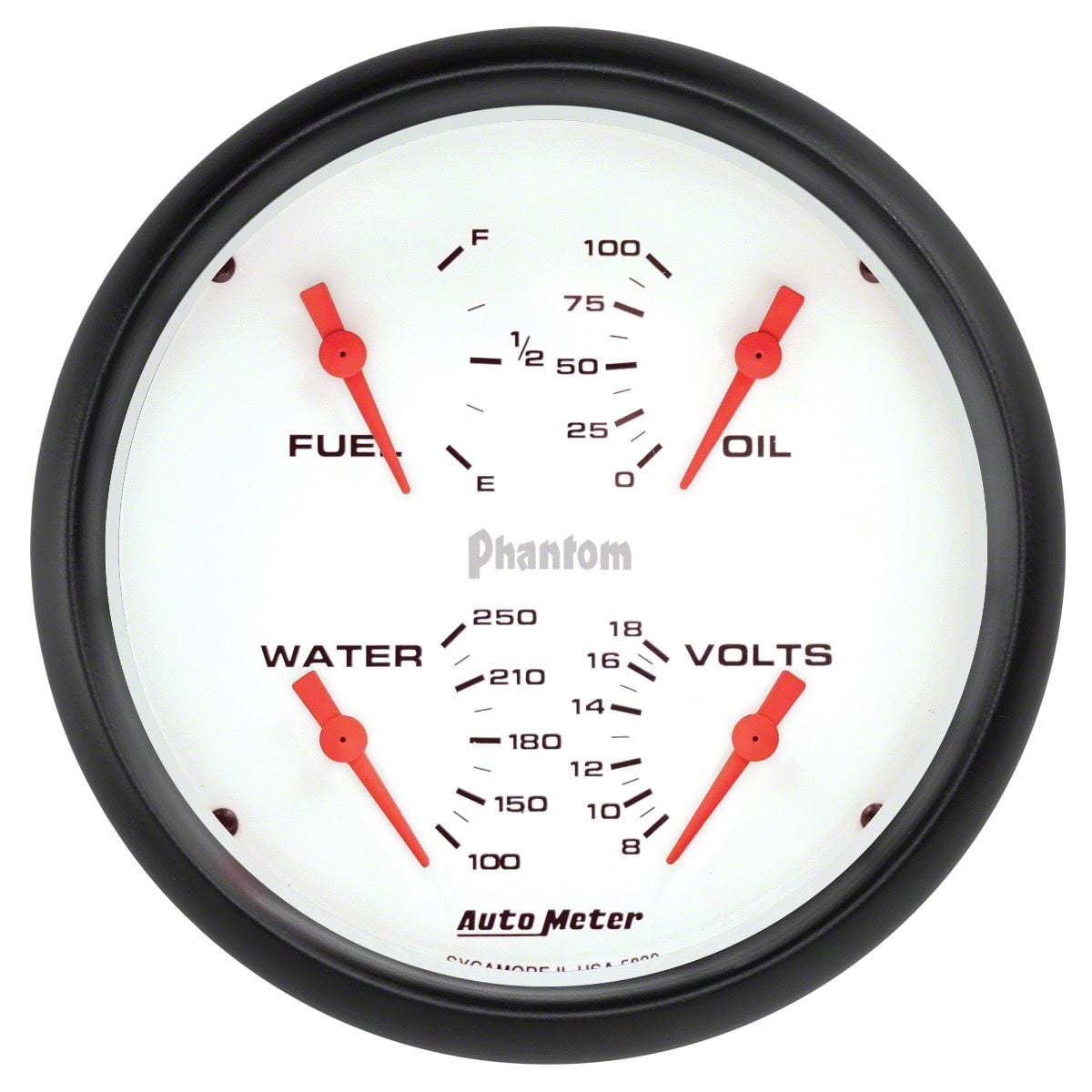 Auto Meter Phantom Series 5-Inch Quad Gauge; 240 ohm Empty to 33 ohm Full (Universal; Some Adaptation May Be Required)
