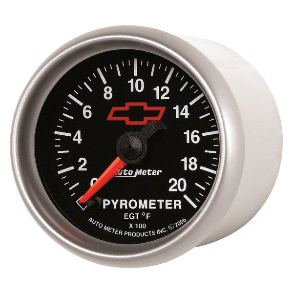 Exhaust Temperature Monitoring. The Auto Meter Chevy Black Series 2-1/16-Inch Pyrometer Gauge; 0-2000 Fahrenheit provides precise exhaust gas temperature readings, crucial for maintaining optimal engine performance and preventing damage. This gauge is essential for high output diesel or forced induction applications where accurate monitoring can protect against catastrophic engine failure.