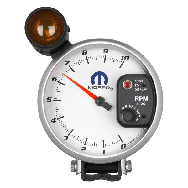 Precision Performance Monitoring. The Auto Meter MOPAR Series 5-Inch Pedestal Tachometer with Shift Light offers drivers an accurate and responsive way to monitor engine RPMs up to 10,000 RPM, ensuring optimal performance and shift timing. Featuring Auto Meter's patented air-core movement and a programmable LED shift light, this tachometer delivers immediate, high-precision feedback critical for performance driving. Engineered for universal applications, it blends function and form seamlessly in any performance vehicle.