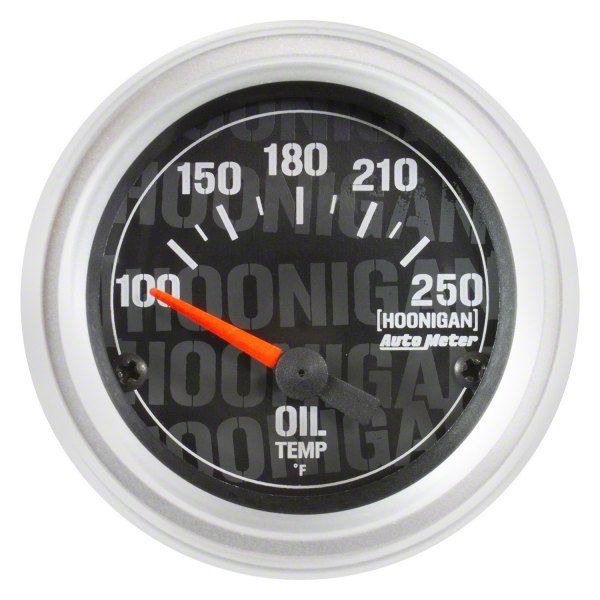 Description. The AutoMeter X Hoonigan gauge collaboration started with Head Hoonigan in Charge, Ken Block's 1965 Ford Mustang Hoonicorn RTR, made famous by the Gymkhana SEVEN installment of his viral video series. A set of bespoke gauges were created for the project , and we are now proud to announce their availability for your own tire slaying creations! Built upon proven AutoMeter Pro-Comp Ultra-Lite internals, these instruments are fitted with unique Hoonigan Industries designed cosmetics which include matte black, Hoonigan 'stamp' dials with stencil font, two color fluorescent red and matte black pointers, and satin silver 'Monster' bezels. The AutoMeter X Hoonigan instrument offering includes standard 2Ó gauges, 3 3/8Ó speedometer and tachometer, as well as a 5Ó in-dash tachometer.