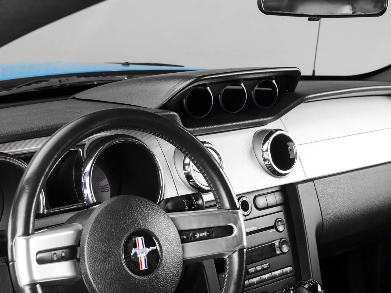 Safety First. Make sure your 2005-2009 Mustang is protected when you glance at your gauges by installing Auto Meter's Dash Top Gauge Pod Triple 2-1/16 in. This gauge pod holds up to 3 2-1/16 in. gauges securely in place, adding a sleek, upgraded look to the interior of your Mustang and ensuring your gauges are properly secured to avoid any damage. The dash top mount also offers you a chance to easily and conveniently glance at your gauges with little effort so that you can keep an eye on all their information. Not only that, but the pod gives you peace of mind since you'll be able to peek at your gauges without taking your eyes completely off the road and risking doing damage to yourself, your Mustang, or others.