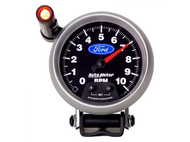 Precision RPM Monitoring. The Auto Meter Ford Series 3-3/4-Inch Pedestal Tachometer with Shift Light provides highly accurate RPM readings, ensuring precise gear shifts at optimal engine performance. Designed for performance enthusiasts, this tachometer helps drivers hit shifts accurately with a reading range of 0-10,000 RPM. The patented air core meter movement allows for rapid needle response, moving from 0 to 10,000 RPM in just 333 milliseconds.
