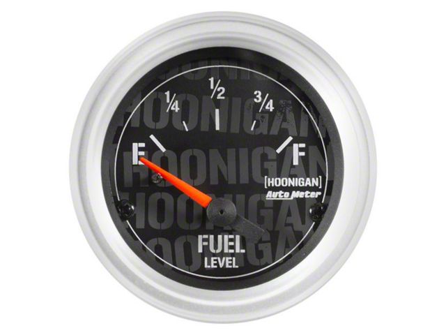 Description. The AutoMeter X Hoonigan gauge collaboration started with Head Hoonigan in Charge, Ken Block's 1965 Ford Mustang Hoonicorn RTR, made famous by the Gymkhana SEVEN installment of his viral video series. A set of bespoke gauges were created for the project , and we are now proud to announce their availability for your own tire slaying creations! Built upon proven AutoMeter Pro-Comp Ultra-Lite internals, these instruments are fitted with unique Hoonigan Industries designed cosmetics which include matte black, Hoonigan 'stamp' dials with stencil font, two color fluorescent red and matte black pointers, and satin silver 'Monster' bezels. The AutoMeter X Hoonigan instrument offering includes standard 2Ó gauges, 3 3/8Ó speedometer and tachometer, as well as a 5Ó in-dash tachometer.