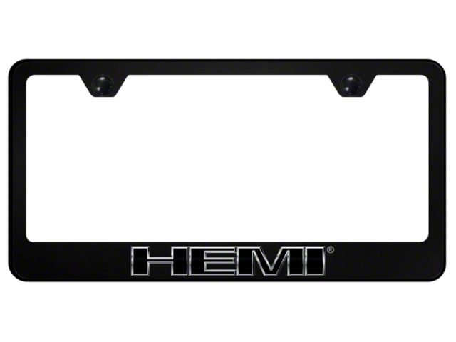 Construction and Appearance. This license plate frame is made from robust polycarbonate, known for its strength and durability. The matte black finish adds a sophisticated touch, while the UV printed HEMI logo resists fading and wear. The wide bottom pan design provides extra stability and coverage for your license plate, ensuring it stays securely in place.