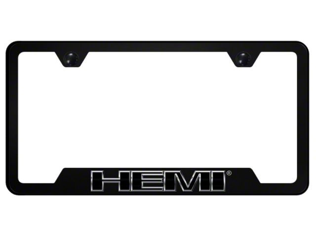 Description. Notched frame design featuring a wide bottom with gracefully notched corners. Exceptional in quality, design and value, these Black UV printed polycarbonate license frames are manufactured using excellent materials and workmanship. Includes matching black theft deterrent caps to conceal unsightly hardware. Proudly manufactured in the USA and backed by a lifetime warranty against flaws in materials or workmanship. Product dimensions: 6.25 Inches (Height) x 12.25 Inches (Width).