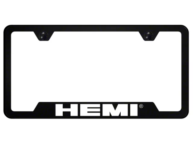 Description. Notched frame design featuring a wide bottom with gracefully notched corners. Exceptional in quality, design and value, these Black UV printed polycarbonate license frames are manufactured using excellent materials and workmanship. Includes matching black theft deterrent caps to conceal unsightly hardware. Proudly manufactured in the USA and backed by a lifetime warranty against flaws in materials or workmanship. Product dimensions: 6.25 Inches (Height) x 12.25 Inches (Width).