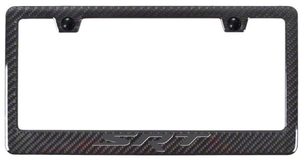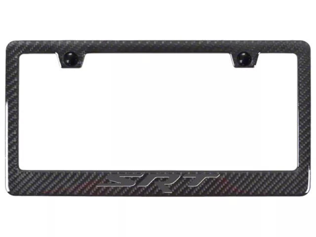 Premium License Plate Frame. The Autogold SRT Carbon Fiber License Plate Frame features a black ABS plastic gloss finish with a real carbon fiber face, offering a stylish and sleek look. Its standard frame design with a wide bottom and "Ghost" design enhances the visual appeal of your vehicle.