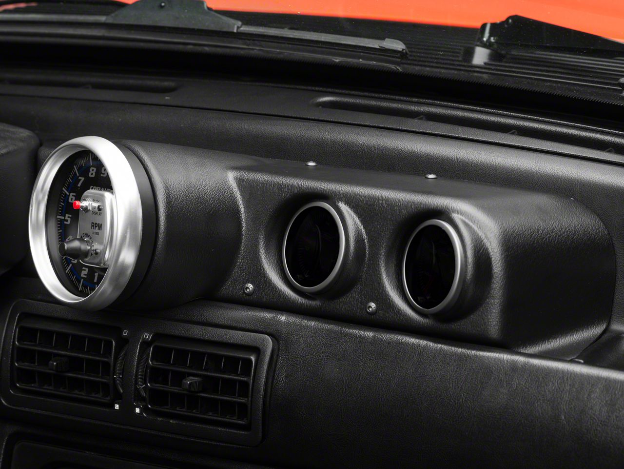 Application. This gauge pod mount is specifically designed to fit the 87-93 Mustang, providing a tailored solution with attention to the unique dashboard contours and gauge layout requirements of this vehicle model.