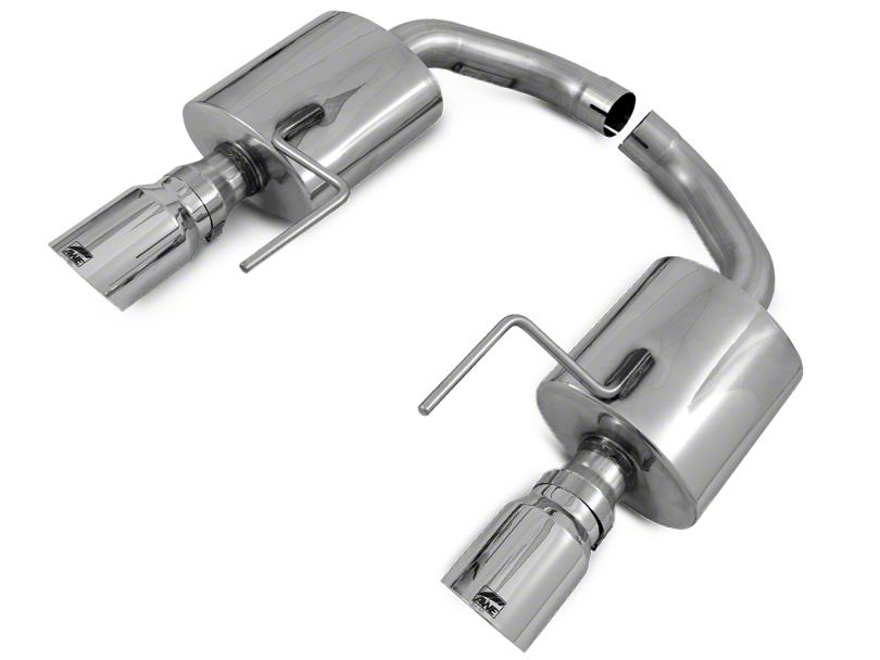 T304 Stainless Steel Construction. AWE proudly engineers, designs, and manufactures their Axle-Backs in-house, in the good old USA. This exhaust system is handcrafted from U.S.-sourced CNC mandrel-bent 0.65” wall T304 stainless steel tubing for superior strength and corrosion resistance. The system features two straight-through resonators that end with chrome silver 4" double walled, slash cut exhaust tips.