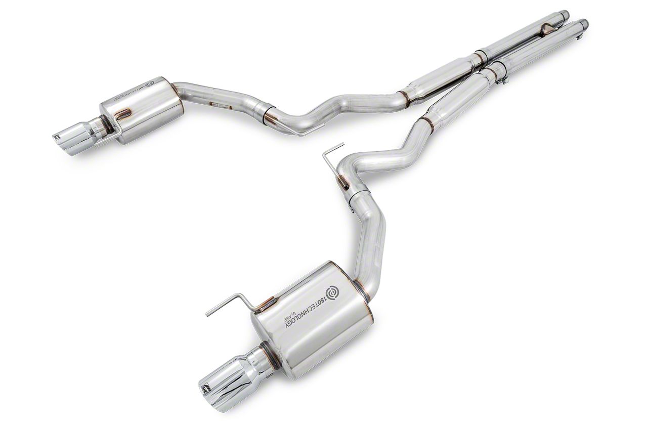 Smooth Muscle Car Tone. Add a smooth muscle car tone to your 2015-2017 GT Mustang without any of the annoying drone commonly associated with performance exhaust systems by upgrading to an AWE Touring Edition Cat-Back Exhaust. This Cat-Back employees an H-pipe with bullet style resonators that replace the bulky factory resonator and a pair of straight-through Touring resonators that feature 180 Technology®. Together these components will give your Coyote powered Mustang a more pronounced sound that is louder than stock without any irritating drone.