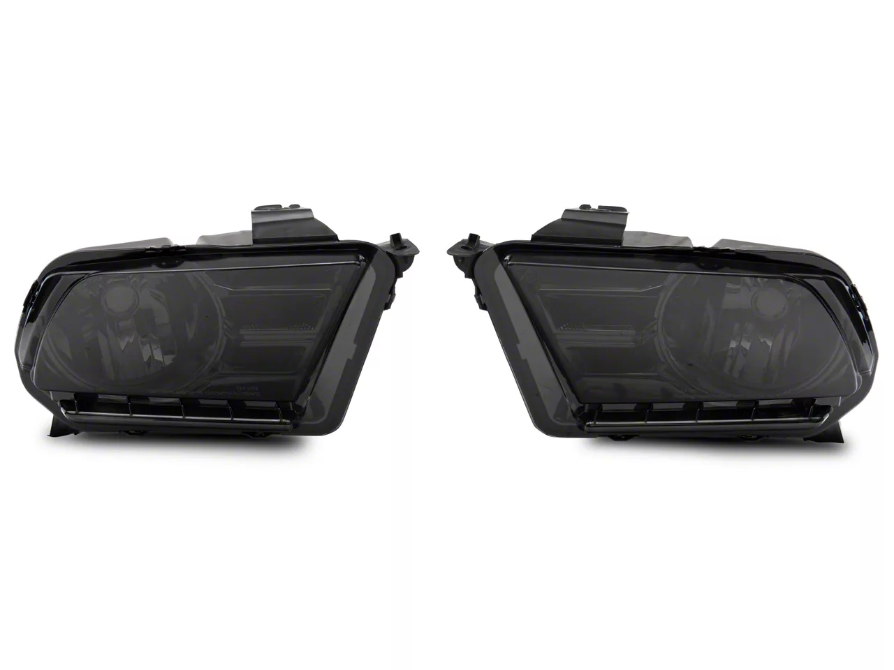 Application. These Axial OEM Style Replacement Headlights; Chrome Housing; Smoked Lens are designed to fit 2010-2012 Ford Mustang models equipped with factory halogen headlights. Driver and passenger side included. Reuses factory bulbs.Raxiom 413417
