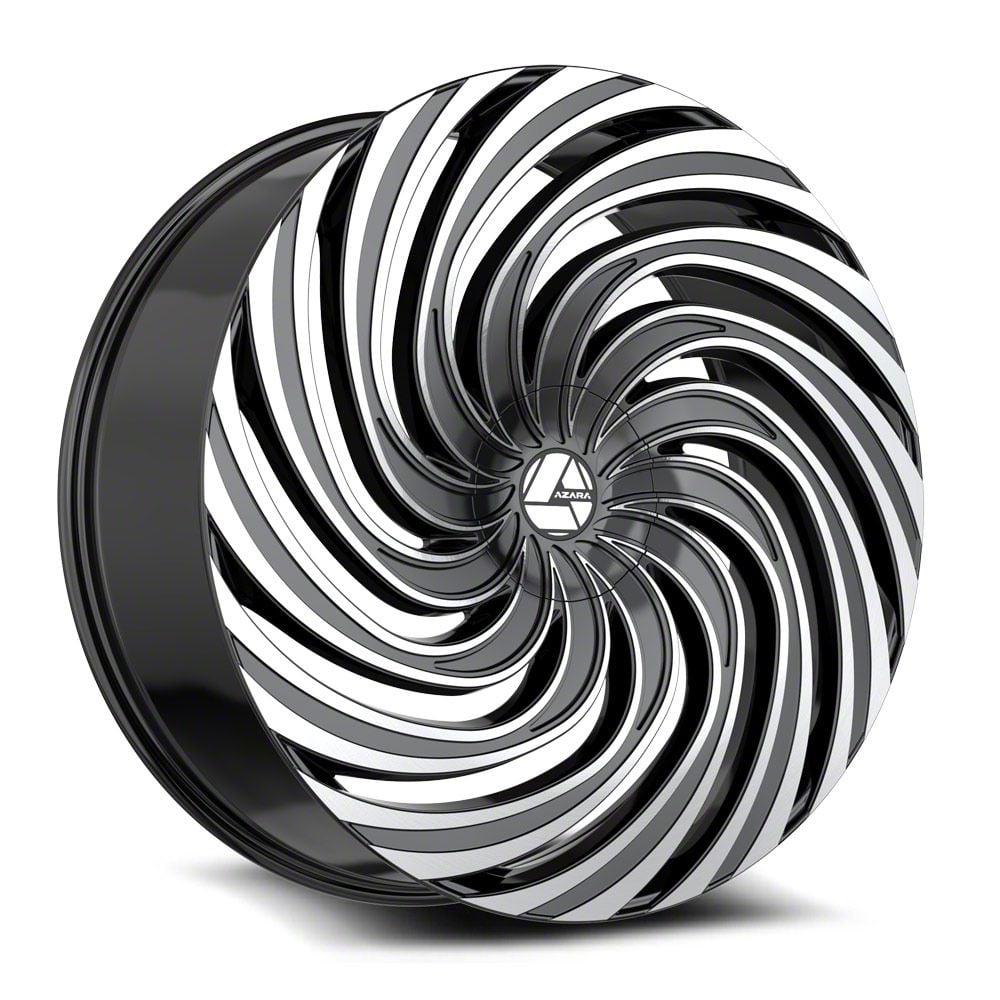 This 22x9.5 Azara AZA-535 Gloss Black and Machined Wheel; Rear Only; 22x9.5; 15mm Offset is completed in a high-quality gloss black finish with steel machined accents that will make everyone take notice. For added looks and strength, the wheel features a durable clear coat that withstands the rigors of daily driving.