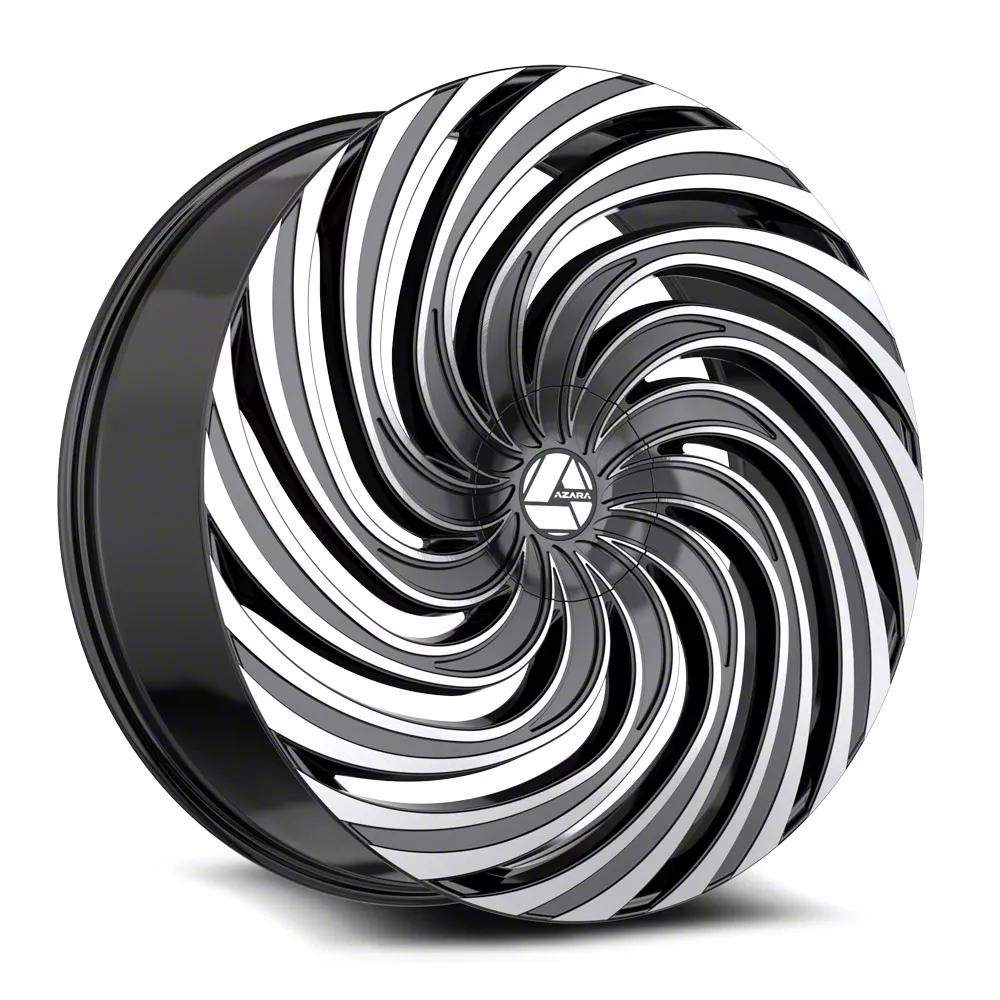 This 24x9 Azara AZA-535 Gloss Black and Machined Wheel; Rear Only; 24x9; 15mm Offset is completed in a high-quality gloss black finish with steel machined accents that will make everyone take notice. For added looks and strength, the wheel features a durable clear coat that withstands the rigors of daily driving.