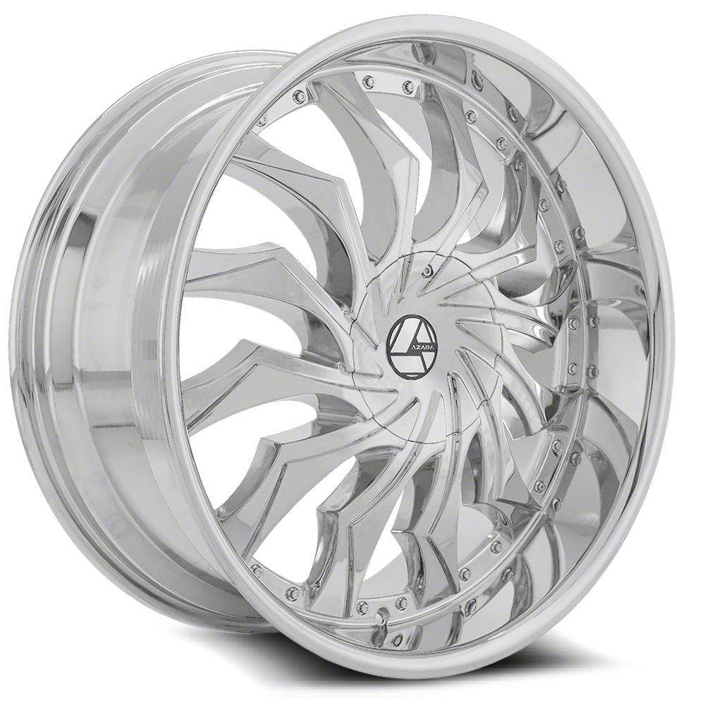 This 22x8.5 Azara AZA-515 Chrome 5-Lug Wheel; 22x8.5; 38mm Offset is completed in a high-quality chrome finish that will make everyone take notice. Using a 3-stage process involving copper, nickel and chrome, you get a sensational bright wheel that can withstand the rigors of daily driving.