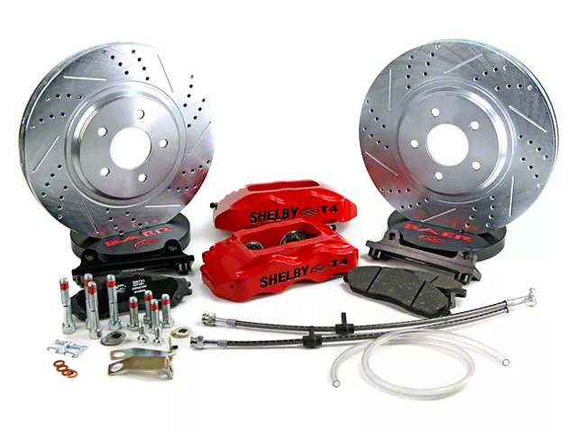 Track-Ready Braking. The Baer Track4 Big Brake Kit transforms the front braking system of 1979-1993 Ford Mustang, 1994-2004 models with spindles, and 1994-2004 Ford Mustang models into a race-capable setup. Featuring 13-inch drilled and slotted rotors and four-piston calipers, this kit delivers enhanced stopping power and fade resistance under high-speed conditions. The direct replacement design ensures you maintain factory proportions while gaining track-inspired performance.