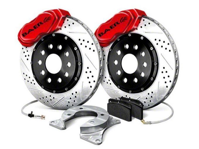 A Pro’s Braking System. Ensure you pull off all the critical stops with the intensity you need using the high-performance Baer SS4 Plus Rear 5-Lug Brake Kit - Red. Designed for all 1979-1993 Ford Mustang, it delivers braking power using a drilled, slotted, and vented braking system for outstanding heat dissipation perfect for aggressive racing.
