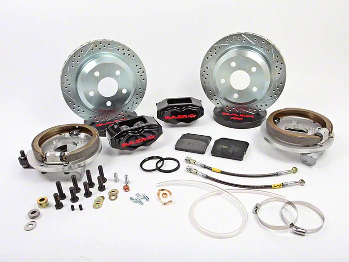 Stopping Force. The Baer SS4 Rear 5-Lug Brake Kit - Black is compatible for all 1979-1993 Ford Mustangs is one of the finest OEM quality brake kits on the market, constructed in a black finish, using top grade zinc plated monoblock aluminum and ceramic brake pads for exceptional stopping power on the street or off-road.
