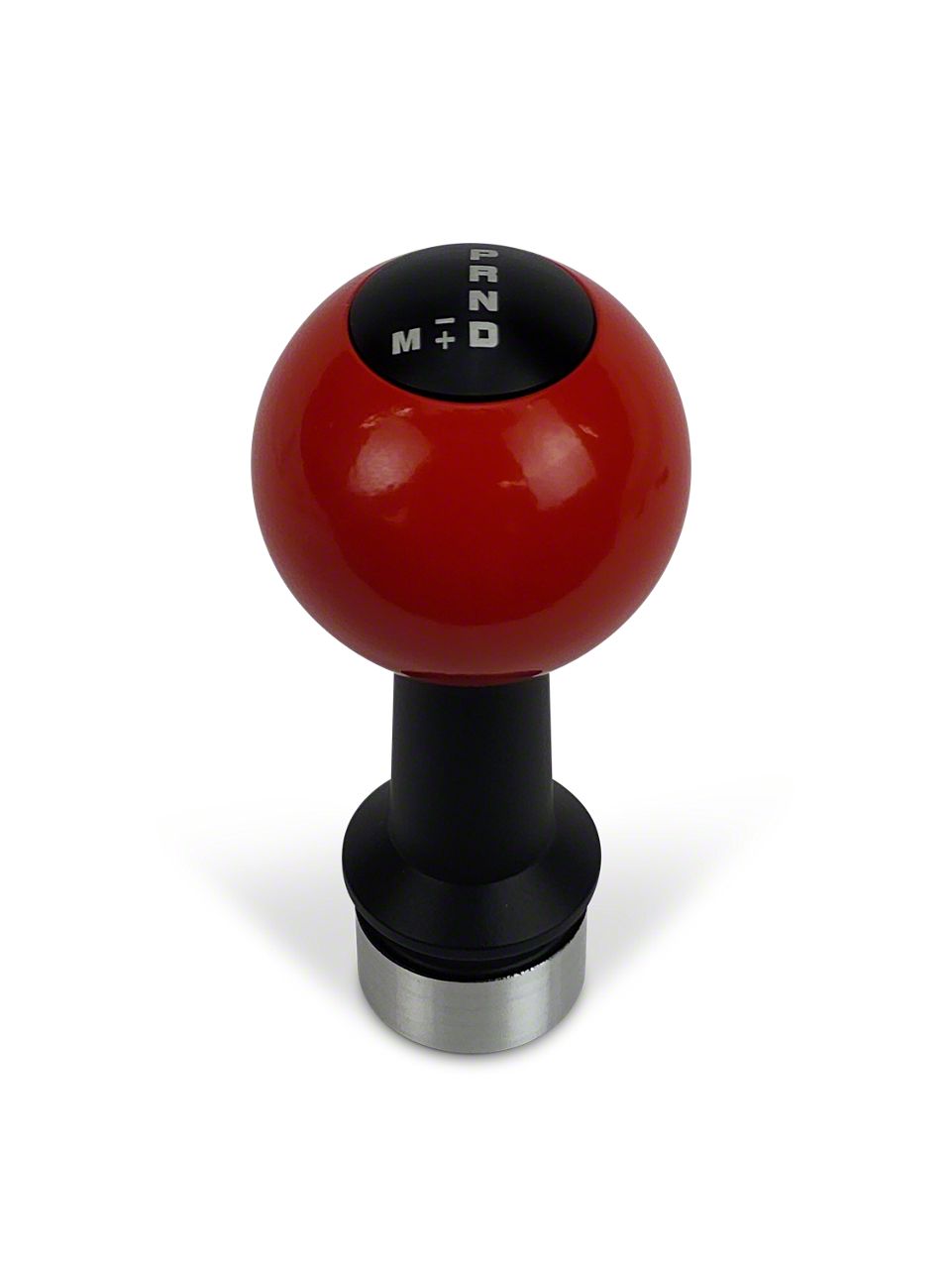 Stylish and Functional Upgrade. The Barton Automatic Shift Knob is designed to enhance both the look and feel of your vehicle's interior. Featuring a dark red finish ball with a matte black finish cap and adapter, this shift knob offers a striking contrast and a clean white shift pattern engraving for easy visibility. The push down style gear lockout ensures secure shifting and precise gear selection.