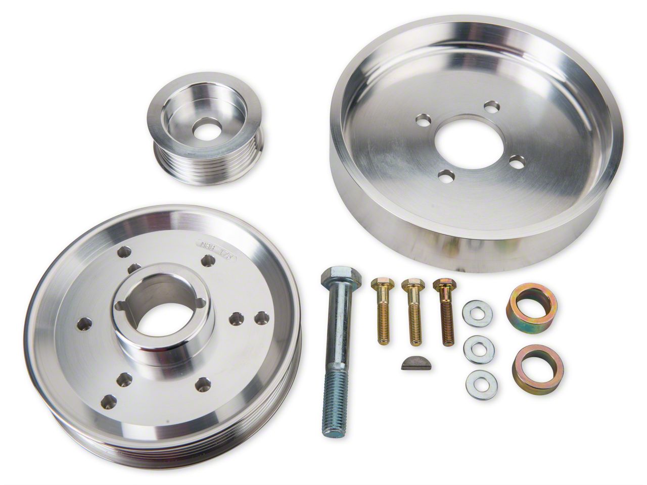 Hand Polished. The brilliant polished finish of these underdrive pulleys will give your engine bay a high performance look.Easy Installation. This BBK Underdrive Pulley kit installs quickly and easily in under 2 hours with no modifications required.Application. These BBK underdrive pullies are designed to fit the Late 2001 to 2004 GT Mustangs with the short water pump pulley with a bowed in face. Re-uses factory serpentine belt.