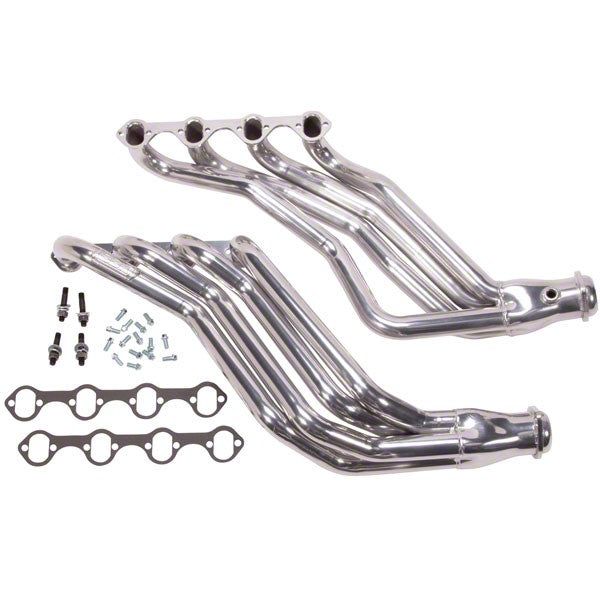 Performance Enhancement. The 1-3/4-Inch Long Tube Headers; Polished Silver Ceramic significantly boost the exhaust flow, resulting in an estimated 15-20 horsepower increase. Designed to replace restrictive stock manifolds, these headers improve engine efficiency and provide a deeper, more aggressive exhaust note, enhancing both performance and driving experience.