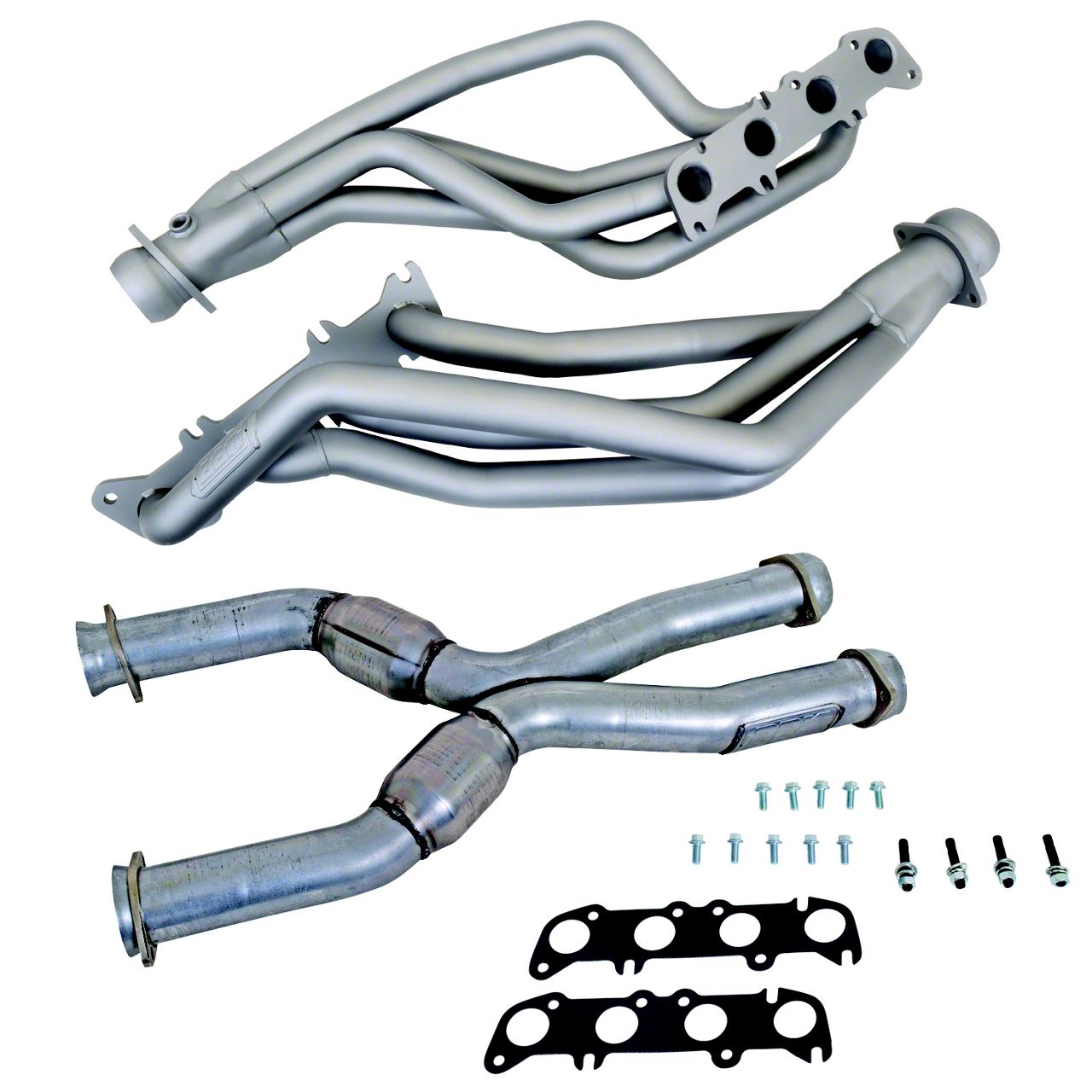 Superior Power Boost. Upgrade your Mustang's performance with the BBK 1-3/4-Inch Coyote 5.0L Swap Long Tube Headers with Catted X-Pipe; Titanium Ceramic. These headers are not just an accessory, they're a high-performance powerhouse that takes your Mustang's engine to the next level, all while sporting a sleek titanium ceramic finish. The long tube design of these headers optimizes exhaust flow, resulting in significant horsepower and torque gains. The included catted X-pipe is designed for maximum exhaust flow and emissions compliance. Feel the difference in acceleration and overall performance when you hit the throttle.