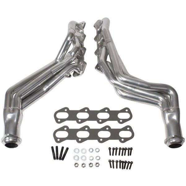 Quality BBK Construction. BBK Long Tube Exhaust headers are manufactured from 1 5/8" CNC mandrel bent tubing for unrestricted airflow. And feature one piece laser cut 3/8" header flanges for added strength, leak-free performance and OEM fit. These headers are then completed in a polished ceramic finish for good looks and to lower under hood temperatures.