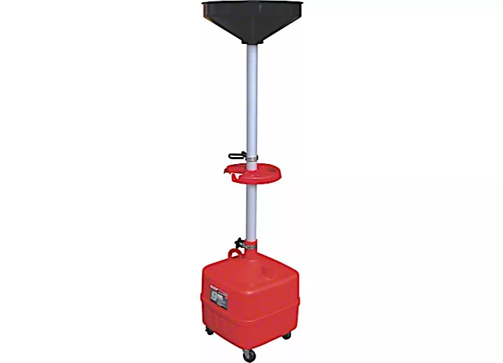 Description. This upright 9-gallon capacity oil drain features a wide-body structure comprised of heavy-duty, translucent polyethylene, providing years of worry-free use.