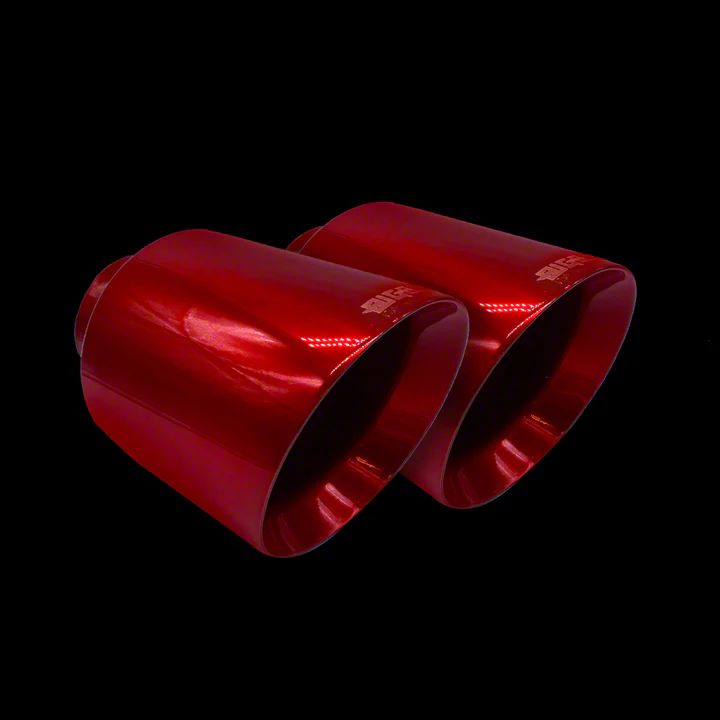 Sporty Vibe. Add eye-catching colors to your Charger and elevate its looks and sound with this Bigboz Exhaust 5-Inch Bolt-On Exhaust Tips; Candy Red. Made from strong stainless steel, it features a hard structure that is resistant to heat and stress, as well as a strong styling that is sure to add a bolder hum to your mean machine