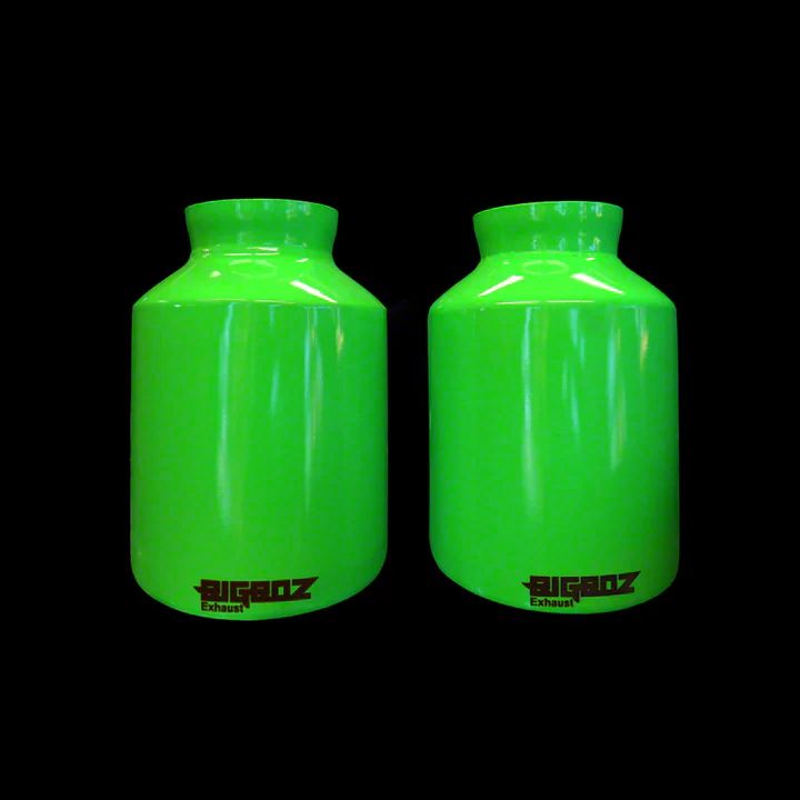 Unique, Head-Turner Look. Give your vehicle a superior look that stands out from the crowd with the Bigboz Exhaust 5-Inch Bolt-On Exhaust Tips. It has a lime green powder-coated finish that provides a unique and eye-catching appearance, and a laser engraved Bigboz logo that adds a touch of custom style to you rear.