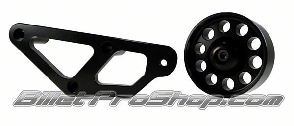 Enhanced Engine Performance. The Billet Pro Shop Aftermarket Supercharger Idler Bracket is specifically designed to enhance the performance of 2007-2014 Mustang GT500 models. Featuring a glossy black finish and crafted from aerospace-grade aluminum, this bracket includes a heavy-duty double sealed bearing and a precision-fit pulley. Its CNC machined construction ensures durability and optimal functionality, contributing to improved supercharger efficiency and engine response.