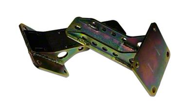 Construction and Appearance. These engine brackets are constructed from durable cast iron and feature a corrosion-resistant powder-coated finish, ensuring long-lasting quality and seamless integration with factory parts. The precise assembly with a tab and slot feature enhances their dependability.