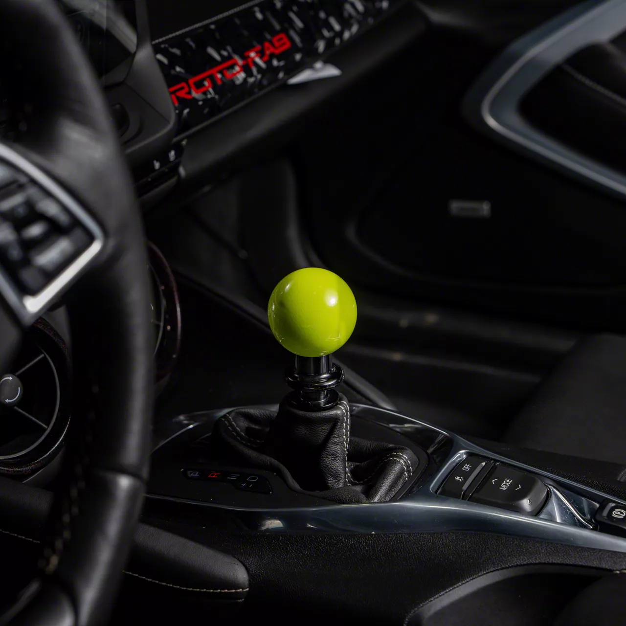 Construction and Appearance. Crafted in the USA, this shift knob features durable materials for a long-lasting finish. The sphere shape offers a comfortable grip, and the vibrant neon yellow color provides a standout appearance. The black adapter ensures a seamless and secure connection to your Camaro's stock shifter.