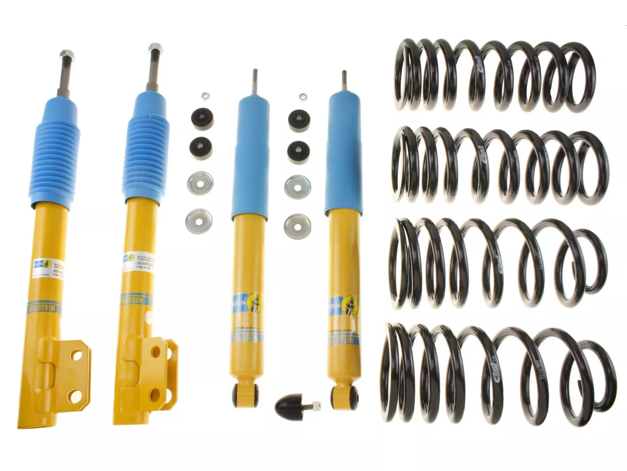 B12 Suspension Package. A Bilstein Shock, Strut & B12 Pro-Kit Lowering Spring Kit is possibly the most comfortable and best performing suspension system available for your V8 Mustang. Engineered as a direct fit upgrade, the combination of Bilstein's Heavy Duty (HD) Shocks and Struts with Eibach's Pro-Kit Lowering Springs will transform your 1994-2004 GT, Bullitt or Mach 1 into a true street warrior.