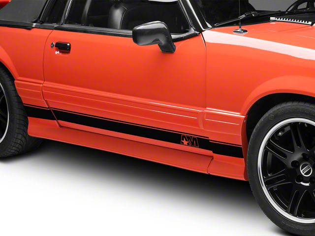 Application. These high quality SEC10 Black Rocker Stripes with AM Logo will fit any 1979 to 1993 Ford Mustang, including the LX, GT and SVT Cobra models.