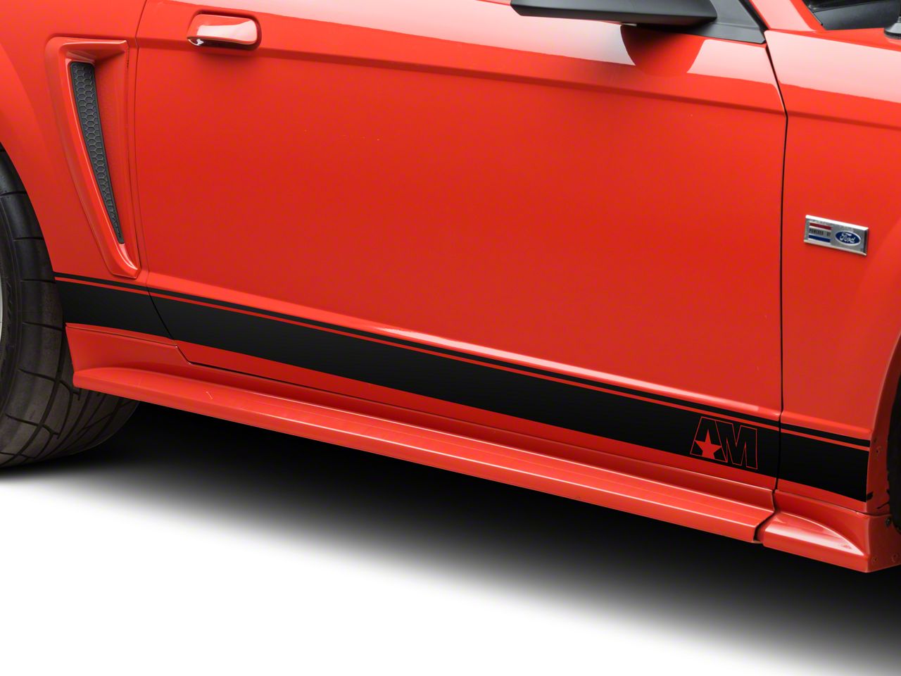 Application. These high quality SEC10 Gloss Black Rocker Stripes with AM Logo will fit any 1994 to 2004 Ford Mustang, including the V6, GT, Bullitt, Mach 1 and Cobra models.