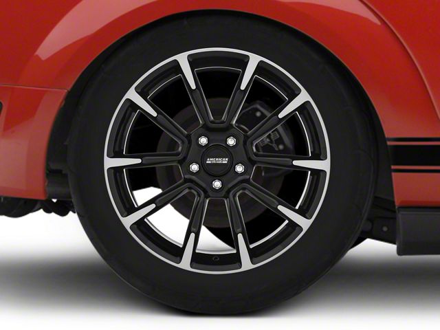 Application. This American Muscle Wheels 11/12 GT/CS Style Gloss Black Machined Wheel; Rear Only; 19x10 with a backspace of 7.39 Inch, 187.8mm and bolt pattern of 5 x 114.3mm (5 x 4.5-Inch) ensures impeccable alignment and unmatched driving stability. Specifically designed for 2005-2009 Mustang models, each wheel is sold individually.